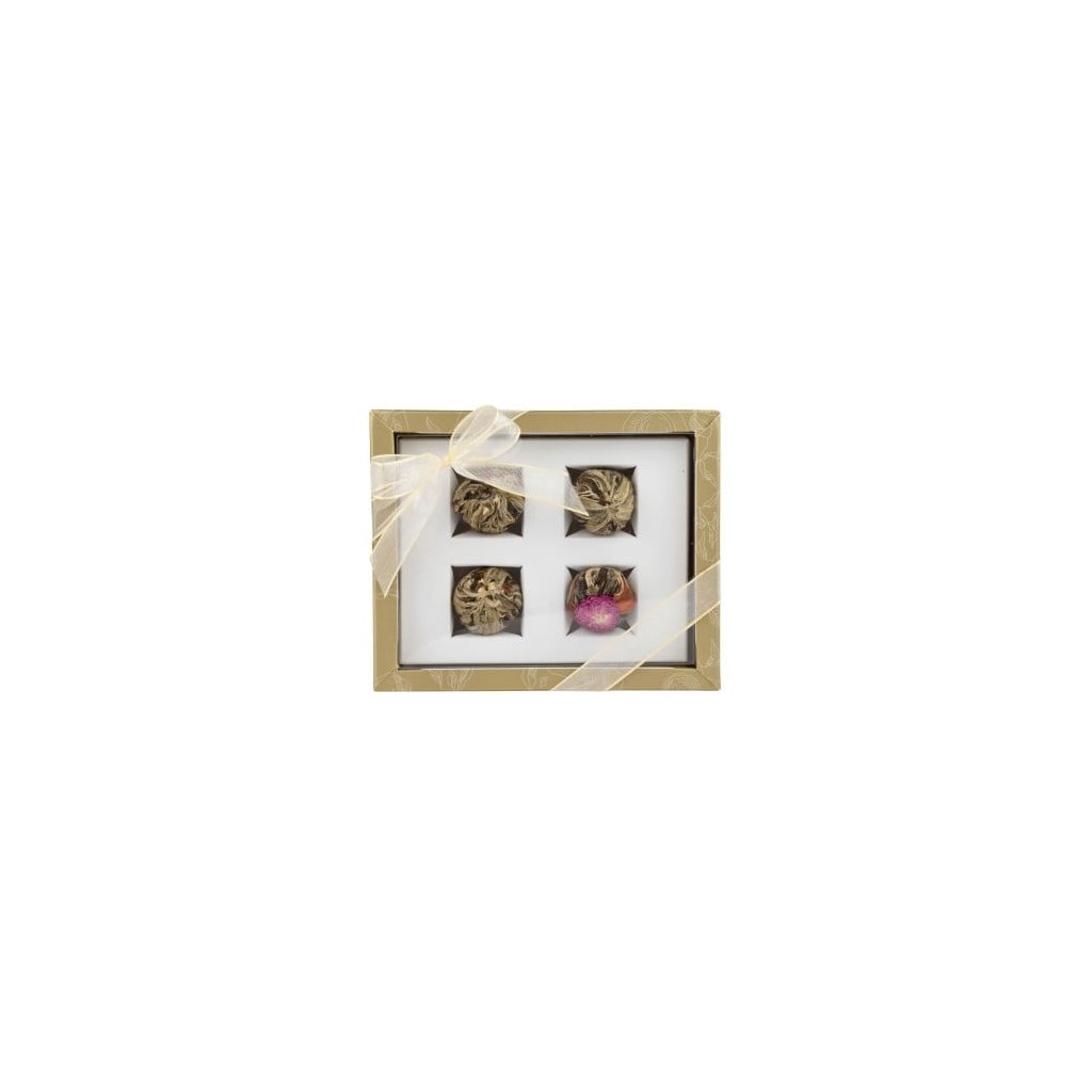 Objevte kouzlo čajového umění s kolekcí čtyř kvetoucích bílých čajů v elegantním zeleném balení. Po zalití se rozvinou do květů a nabídnou jemnou chuť s vůní jasmínu, lilie a laskavcovky – zážitek pro oči i chuť. Najdete v ní čaje Božská lilie, Posvátné květy, Rodinné štěstí a Vycházející slunce.SloženíPravý bílý čaj, květy jasmínu, laskavcovky a lilie.Doplňkové parametry