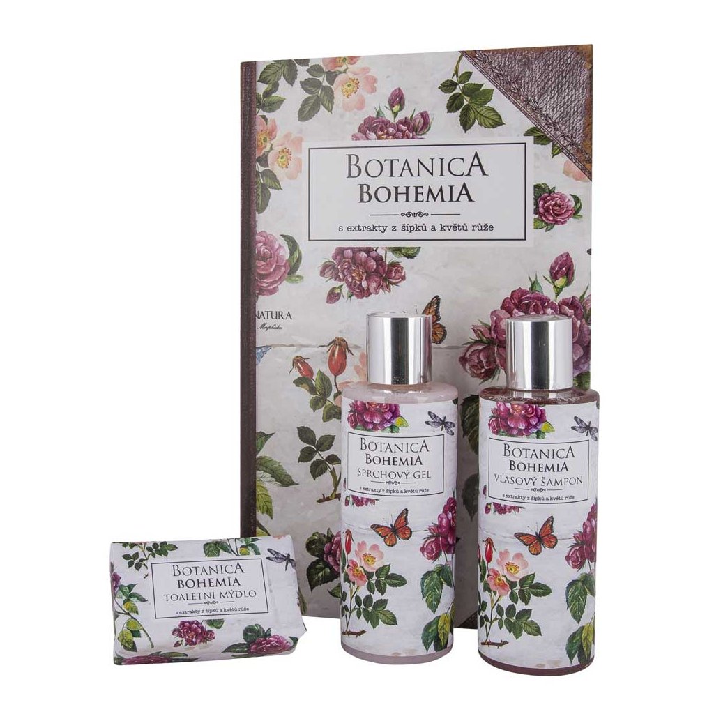 Kosmetický dárkový balíček složený z výrobků prémiové kosmetiky Botanica Bohemia - šípky a růže. Originální dárková sada obsahuje sprchový gel 200 ml. vlasový šampon 200 ml a ručně vyráběné toaletní mýdlo 100 g s extrakty z šípků a květů růže.Doplňkové parametry