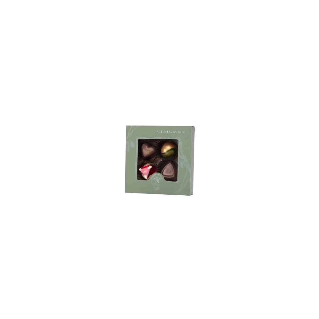 Dopřejte si výběr čtyř ručně vyráběných pralinek, které kombinují poctivou čokoládu s nápaditými náplněmi: Brazilská káva, Sušenka, Matcha & Malina a Pistácie. Skvělá volba jako pozornost pro druhé nebo jako malý čokoládový zážitek jen pro sebe. Skladujte na suchém místě a při pokojové teplotě ideálně do 20 °C.SloženíCukr, kakaová hmota, sušené plnotučné mléko, kakaové máslo, emulgátor: sójové lecitiny, přírodní vanilkové aroma, rostlinné oleje (palmový, řepkový), bezvodý mléčný tuk, krém s příchutí sušenek (cukr, voda, glukózový sirup, koncentrované kondenzované mléko, aromata, barvivo: amoniak sulfitový karamel, sůl, maltodextrin, skořice mletá, stabilizátory: guma guar, sorban draselný), pistáciový krém (pražené pistácie), Oxalis sirup Matcha s příchutí malina (třtinový cukr, koncentrovaná jablečná šťáva, voda, koncentrovaná šťáva z červené řepy, práškový zelený čaj Matcha, koncentrovaná citronová šťáva, přírodní aroma), kávový krém (glukózový sirup, cukr, koncentrát ze zkaramelizované mrkve, voda, instantní káva, přírodní aroma, emulgátor: estery mono- a digliceridů mastných kyselin), pražená mletá káva (100 % arabika), sušený glukózový sirup, barviva: E102, E129, E133, E172. Může obsahovat stopy jiných skořápkových plodů. Barviva E102, E129 mohou nepříznivě ovlivňovat činnost a pozornost dětí. Obsah kakaové sušiny v hořké čokoládě nejméně 54,5 %. Obsah kakaové sušiny v mléčné čokoládě nejméně 33,6 %. Obsahuje RSPO certifikovaný palmový olej z udržitelných zdrojů. Podporujeme odpovědnou výrobu s ohledem na přírodu i komunitu.Nutriční hodnotyVýživové údaje na 100 g: energetická hodnota 795 kJ/ 191 kcal, Tuky 13 g, z toho nasycené mastné kyseliny 8,1 g, Sacharidy 16 g, z toho cukry 15 g, Bílkoviny 1,9 g, Sůl 0,08 g.Doplňkové parametry