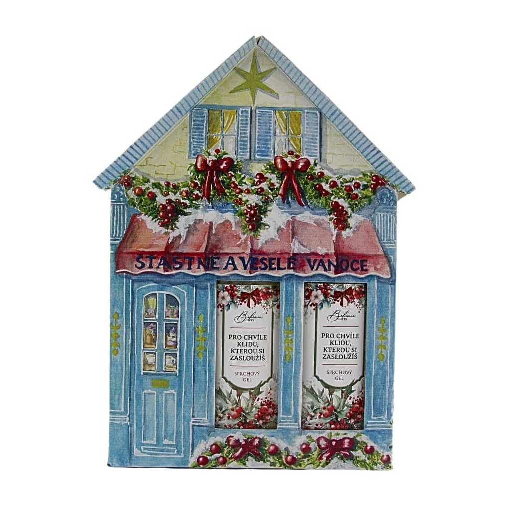 Vánoční dárkové balení Domeček „Šťastné a veselé“ se dvěma sprchovými gely (2×100 ml). Krásný tip na malý dárek s kouzelným motivem Vánoc.Doplňkové parametry