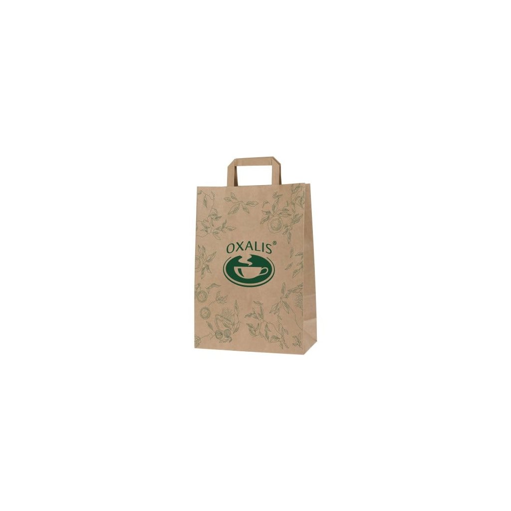 Přírodní papírová taška na malý nákup s logem OXALIS. Rozměr 220 x 100 x 310 mm.