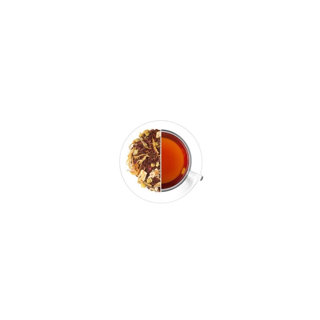 Rooibos Slunce v Buši je jemná, sluncem inspirovaná směs, která spojuje červený rooibos s pomerančovou kůrou, malinami a okvětními lístky měsíčku a smilu. Výsledkem je čaj s krásným vzhledem a příjemně voňavým, lehce ovocným aroma. V chuti potěší harmonickou kombinací citronových tónů a červeného ovoce, která vytváří lahodný, svěží a vyvážený šálek vhodný pro celodenní popíjení. Dle současné legislativy EU nemůžeme uvádět zdravotní účinky bylin.Příprava: Vroucí vodou zalejte čaj v poměru 10 g (cca 6 zarovnaných čajových lžiček) na 1 litr vody. Ponechte 5 minut louhovat. Poté přeceďte.SloženíRooibos (90,1%), aroma, pomerančová kůra, maliny, měsíček, květy smilu. Může obsahovat stopy skořápkových plodů.