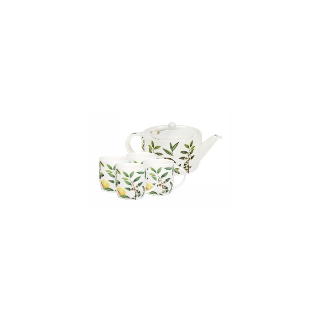 Elegantní porcelánový set z kvalitního fine bone china zahrnuje konvici a čtyři hrnky, a je tak ideální pro pohodovou přípravu a servírování čaje pro čtyři osoby. Jemný design v kombinaci s prvotřídním materiálem zaručuje příjemný zážitek z každého šálku. Set obsahuje konvici o objemu 1,4 l a čtyři hrnky, každý s objemem 350 ml.Doplňkové parametry