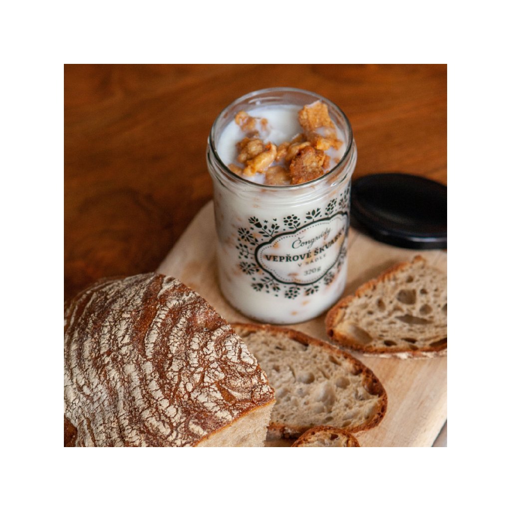 škvařené vepřové sádlo, vepřové škvarky min. 35 % objemu